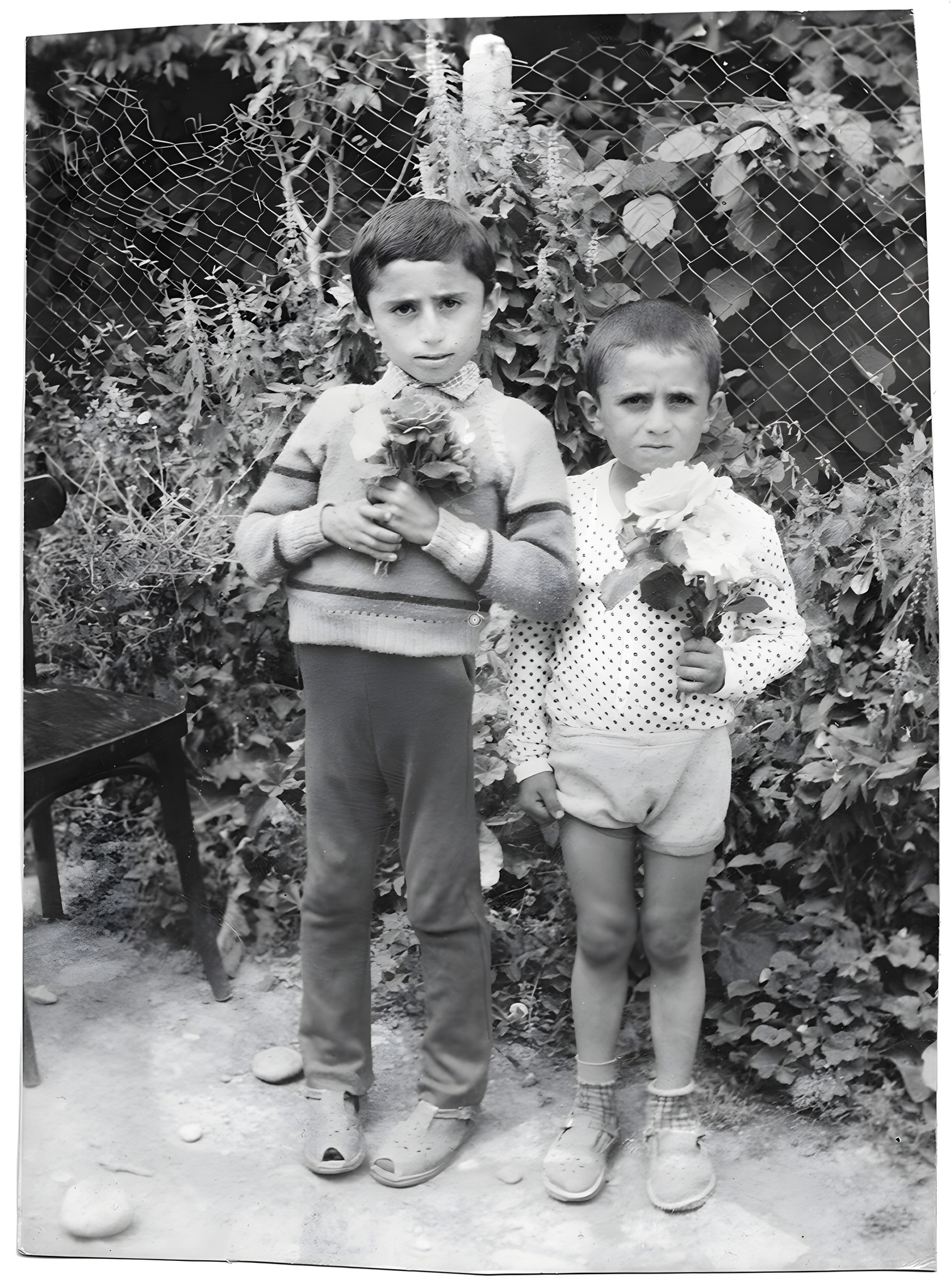 —When I was two, we were in our apple orchard near the line of occupation—my sister, my mom, and dad. We saw several Russian border guards standing on the hill just above us.