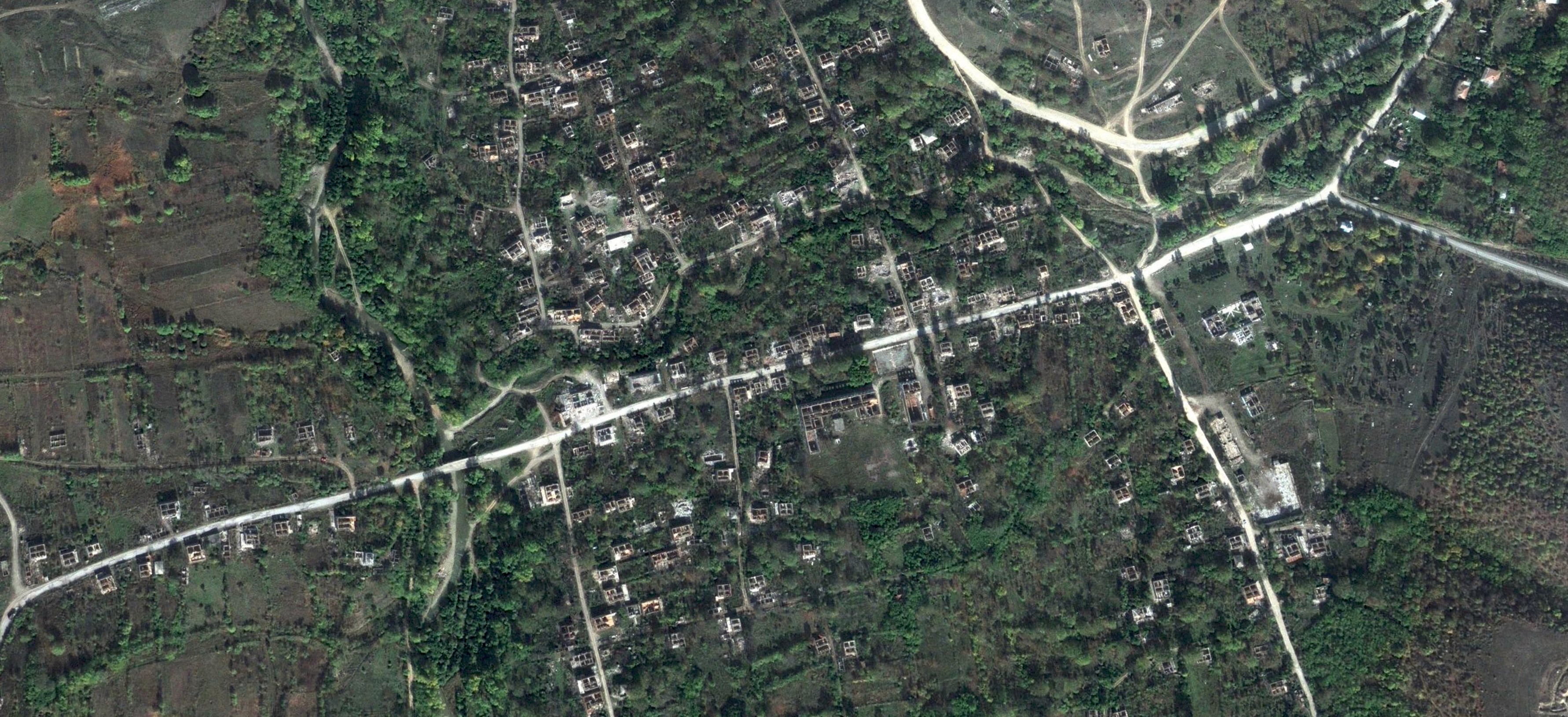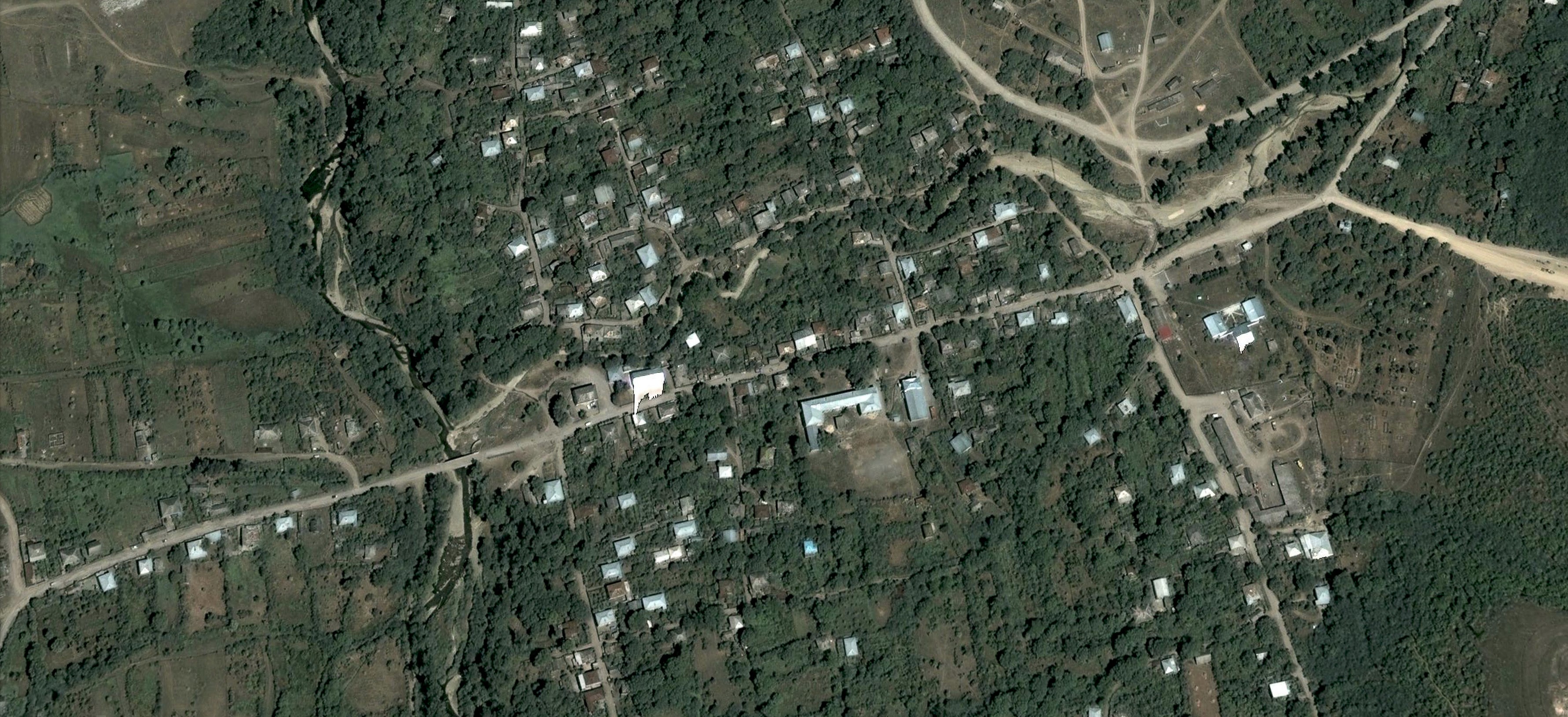Many Georgian villages in the region were completely destroyed during the 2008 war. Some houses were bombed, others—burned. This map includes data from CNES / Airbus